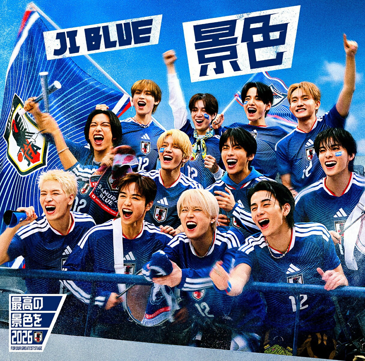 JO1の6人とINIの6人から成る12人ユニット・JI BLUEがサッカー日本代表公式テーマソング「景色」のCDシングルを2026年6月3日(水)に発売することが決定し、予約が開始された。